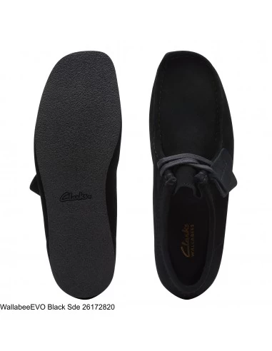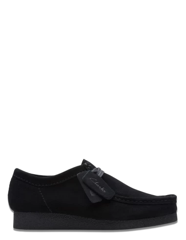 La Wallabee de chez CLARKS propose une tige en daim noire.
