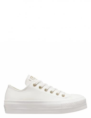 Converse Lift Ox en simili cuir blanc avec œillets dorés.