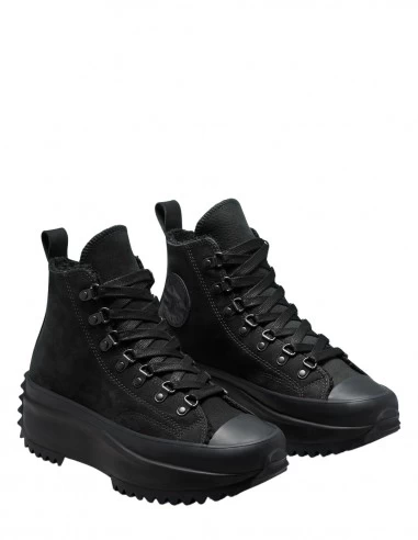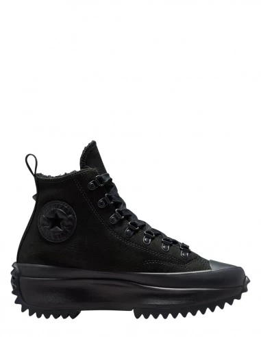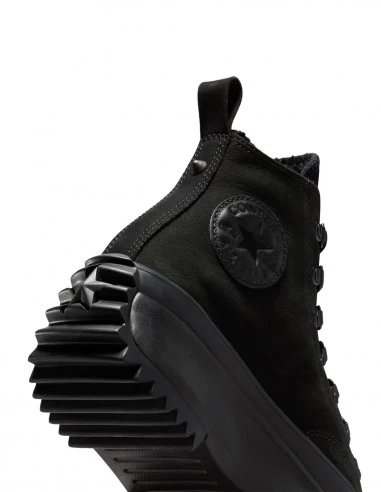 Ayez le style avec cette Run Star Hike Hi en cuir noir et sa doublure sherpa isolante pour affronter l’hiver.