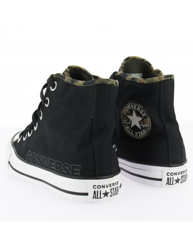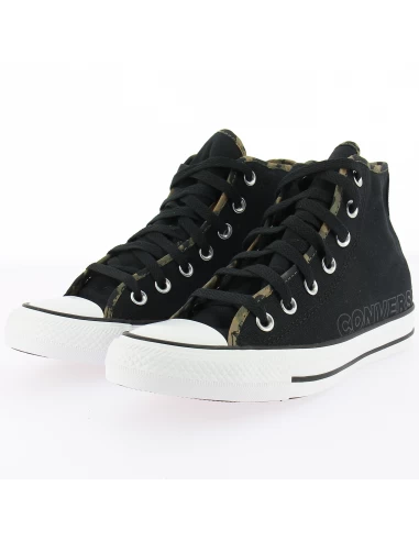 Nouvelle venue chez Converse, cette Chuck montante en toile noir avec un liseré camouflage et son patch camouflage sera assurément une pépite.