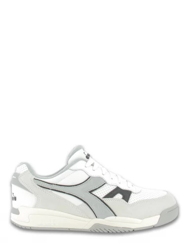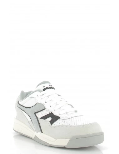 La Winner Sl de chez Diadora propose une semelle en cuir blanc accompagnĂ© d’empiĂšcements en suĂšde gris et noir.