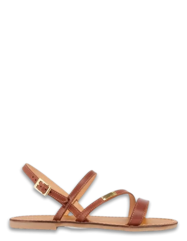 Cette sandale à boucle, propose une tige entièrement en cuir cognac et un médaillon doré » Les tropéziennes par M.Belarbi »