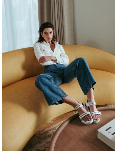 Le marquage Versace Jeans couture est présent sur le coup de pied et sur la lanière au talon.