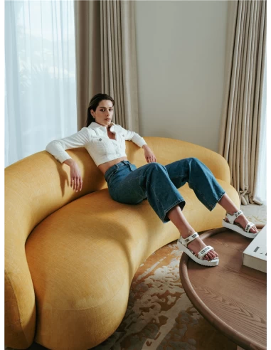 Une impression style baroque, sur la semelle, donne de la couleur au modèle.